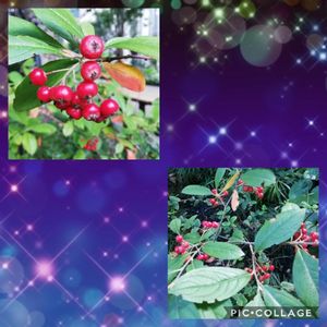 いつもきれいな赤い実💗 左は、アロニアでしょうか?🎶 右下は何でしょうか?🍀