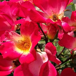実家のバラが見頃を迎えてました😊 母の日にあげていたバラの苗 カクテルしか名前覚えてない😅 はじめの一本が今ではこんなに増えてくれて私は嬉しいけど母はもういらないそう🤣 密を集めに蜂もいました🌹🐝〜