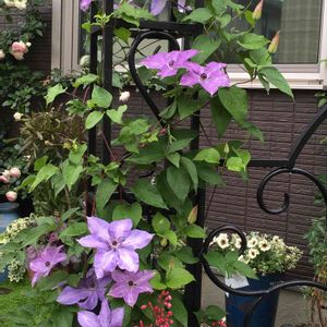 市販のルーバーフェンスをペイントして、クレマチスモンタナを絡めてみました。味気ない賃貸アパートの門をデコレーション。