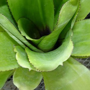 【ツマベニアナナス】 《パイナップル科》 花言葉 「博愛」「奇抜な装い」 アナナス 「たくわえる」「大切な気持ち」 「私にとってあなたは最愛の人です」 アナナス フランス語でパイナップル 筒状部の中に 剣山状の花蕾に 淡い紫色の花を咲かせます。 花は筒状部の上までは 伸び出しません。