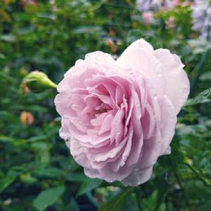 こんにちは☔ 今日も雨風強いです。 フランス・アンフォ、初開花てす。時折花弁の縁にピンクのグラデーションが入ると記されてますが、その気配は無し。😅 香りは良いです💕