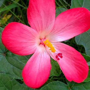 庭に綺麗な花が 咲いているのを見つけました 調べてみると モミジアオイ🌺 鳥が運んで来たのかな 嬉しいです🎵 正しくはアジアンハイビスカスでした😀 ありがとうございます🍀