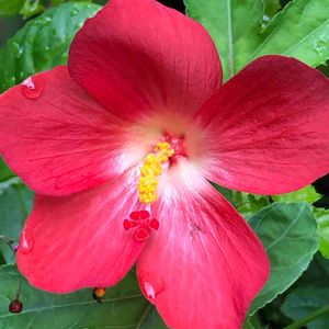 とうとう咲きました❤️種蒔きからのアベルモスクス❤️待ってたよ〜❤️ 去年知り合いの家で見せて頂いて種を分けて貰って種蒔きから育てたアベルモスクス 別名アカバナワタ もう一つの名前がアジアンハイビスカス🌺 もう嬉しくて❤️あ〜可愛い❤️ 🏷燃えるような赤花❤️ 🏷美しい雫たち💧 ぴったりでしょう♪