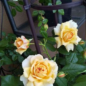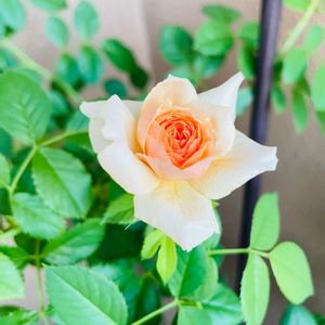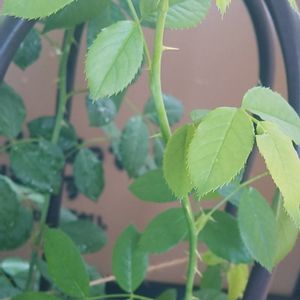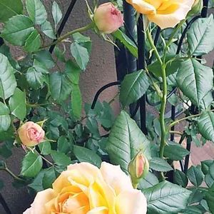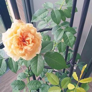 2番花の中の2番手の子🌹しっかり咲いてくれました✨💛 香りがめちゃくちゃいい 新旧の葉の緑のコントラストがけっこう好きです うちのバラのなかで一番水を欲しがるので夏本番前に10号に鉢増ししようと思います✊