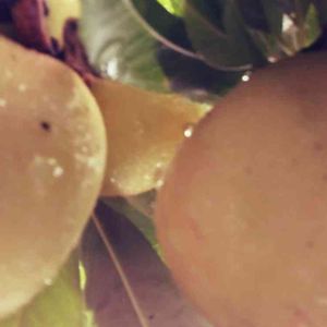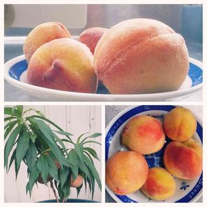 高さ20センチ程の鉢植ミニ桃🍑の木 収穫次期が判りません?🤔誰か教えて👂️ 梅酒に浸ける梅の実よりちょっと大きい位、上の方がすこ~し赤みがさしてきてます🤤