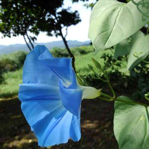 今年初めてのアサガオヘンリーブルーが咲きました🎶 つるは2階まで伸びてもツボミがつかずこのままおわるのか……と思っていたらついにやっと1輪咲いたのです~😭
