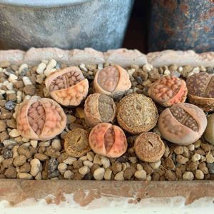 細長いリトープス丼。 根付いてないけど、脱皮してるのでちゃんと生きてるんだな〜と実感。