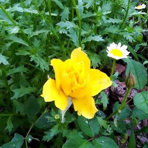 おはようございます。 我が家の2番目のバラ、ヘンリーフォンダ。 ワンコハウス横で地植えですが、昨年は最後に咲きました。今年はせっかち? 黄色のバラは中々色合わせが難しく、我が家では唯一です。 春の花と一緒に賑やかさを楽しんで咲いています。 今日も元気に過ごしましょう。