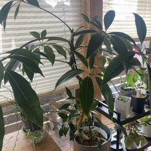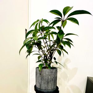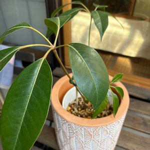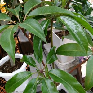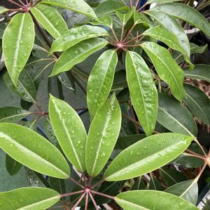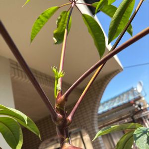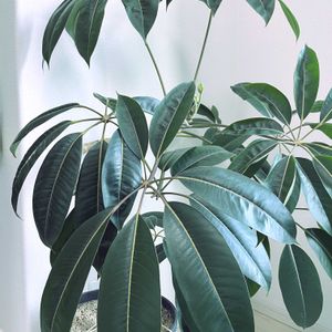 南窓際族😊特等席😊1番日光が当たるので場所の取り合いです〜😊育成記録😊ツピタンサス2号機をお迎えして大きな木の魅力にハマりました😊その後フィカスウンベラータ、ベンガレンシス、バーガンディー、リラータ、アマゾンオリーブ、ユッカバリエガータをお迎えしちゃいました😊 ツピタンサス特徴 かつてウコギ科ツピタンサス属カリプトラタスという一属一種を構成する植物でしたが、現在はシェフレラ属に統合されシェフレラ属ピュックレリとされています。現在でも流通する場合は旧属名のツピタンサスが一般的です。見た目は同属のブラッサイア(シェフレラ・アクチノフィラ)にそっくりですが、ツピタンサスのほうがブラッサイア(シェフレラ・アクチノフィラ)よりも葉が細長く、小さい印象があります。また、側脈(葉脈の細い部分)の走り方がブラッサイア(シェフレラ・アクチノフィラ)よりも細かいように感じます。艶のある葉は日光によく当てるとより一層美しくなります。 ツピダンサスの花言葉は、「幸福」です。手のひらを広げたような大きな葉が、強風や大雨から家を守ってくれるとされています。 原産地の熱帯アジア地域では、家や家族を守る樹木として大切にされているそうです。