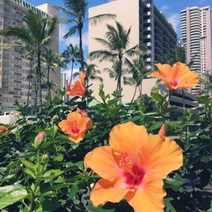 🌺ハワイ州の花は黄色のハイビスカス🌺 これは中がオレンジがかっているので、ちょっと違うけど。 完全な黄色のハイビスカスには、ハワイといえども、なかなか出会えません