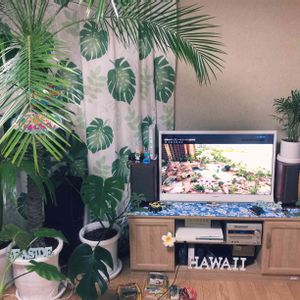 自分の部屋もHawaii定番の大好きなホヌとモンステラ柄🌺🌴✋😁ヤシ系やモンステラと全てHawaiianにしてたら暗かった部屋がパッと明るくなった✋😁