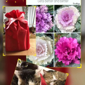 🌸うちの葉牡丹🌸 葉牡丹四種、ゆっくりと成長? まだまだ楽しめますね😊 孫のクリスマスプレゼント🎁準備完了 クリスマス当日にクリスマスツリー🎄の下に並べるそうです❣️ ニャン達、珍しく皆んなお顔を寄せて寝てました😊