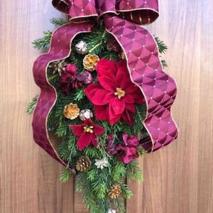 🎄クリスマススワッグ🎄 去年作りました。 今年も色々とクリスマスリースを作ったので出しそびれてました😅 外に飾れるように材料は全てアートです。 お庭のクリスマスホーリーで作ったリースが、少し元気がなくなってきたので付け替えようと思います😊