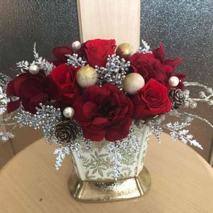 🔴クリスマスアレンジ⚪️ 花子改め、花ママです。 プリザーブドとアートのアレンジメントです。
