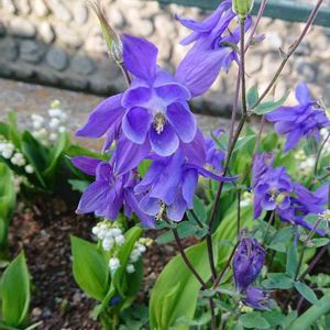 おはようございます👋😃☀️ 今朝も爽やかなオダマキとスズラン🌼💠🌼 散歩で行く用水路沿いで✨ 昨日がスズランの日だったのを忘れてて(笑)🤭😅