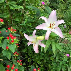 連投すみません🙏💦もう一枚ユリを🙋♀️💕 ピンクのユリはヒペリカムやフロックスと一緒に咲きました💕 横にブッドレアと小さなピンクアナベルも写ってますね😅 それぞれのpicがこみこみと隣あっているのがわかる感じですね😳💦 足元の空いている場所はスノーフレークがお休み中です😴 ものぐさなので毎年出てきてくれる宿根草は庭に欠かせない大切なお花達です😌💕