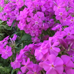 《宿根フロックス》 実家の庭に濃桃色のフロックスが、花畑に白いフロックスが咲いています😊💕✨ もう少し薄い桃色などがあったと思うので、今後楽しみです😊🎶♫🍀 和名を、クサキョウチクトウと言います 別名は、オイランソウ、 フロックス・パニキュラータです