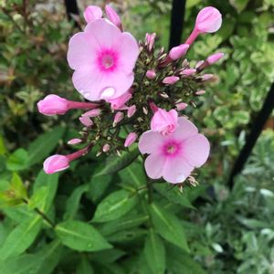 kazumiさん と ビーさん に 『 宿根フロックス 』と 教えて貰いました 🤗 💫 Phlox paniculata フロックス ・パニキュラータ ハナシノブ科 フロックス属 ( クサキョウチクトウ属 ) 耐寒性 宿根草 別名 オイランソウ 原産地 = 北アメリカ 庭植え or 鉢植え 💠 花 期 6月~9月 6月 5日 7時 44分 ☕️喫茶店の前にて撮影🎶