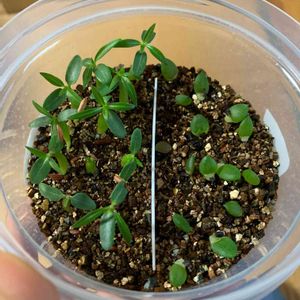 アロエの何かの種子を播いてみたら発芽したもの。 個人輸入した時に、梱包用のガムテープにひっついて紛れ込んでいた種子w4粒くらい貼りついてた。ちなみに種子はオーダしていない(`・ω・´) 多分africana、 arborescens、cryptopoda、ferox、marlothii、pluridensのどれか…? ていうのもオーダーしたものの他に、作業用のメモ?までも入っていて(←私の分じゃなくて多分他のお客さんの分) そこには種子の内訳のようなものが書かれており、アロエはこの5種類だった。 結構特徴的な芽。縦筋が入ってる。今後どうなるのかすごく楽しみ(*゚▽゚*)