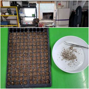 今日も☔だ、 ガイラルディアの種、 去年の秋採取したのをセルに撒いていこう❗ 非常に寂しい(/_;)/~ので、YouTubeでも聞きながらしょうと思い立ち、テレビをセットしました。(^.^) 昼から晴れたので除草剤を撒いてきょうは終了しました‼️ 植え付けはまた暇を見つけてしていこうと思います(*^^*)(*^^*)