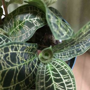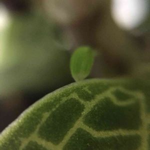 マコデスペトラ 小さなはっぱが見えます。 地面から生えていたから雑草かと思い抜こうとしたけれど、はっぱに模様が! これはもしや、ペトラのはっぱ?