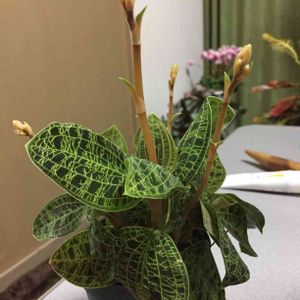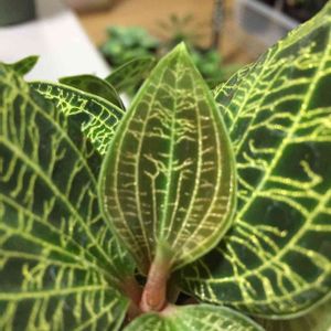 葉の表面を拡大してみたら 葉脈の光る部分はわずかに細胞が大きい なるほどね(・∀・)! The surface of Macodes petla .