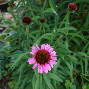 エキナセア ピンクパッション❤ 背たけも低くお花も小さめだけどしっかりした茎の強いコ。 こぼし種😆であちこちから出てきてるよ🌼