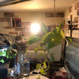 梁を増設。 ポトス吊るしてみた。 よーく見ると・・ 偶然。 瓶からゴムの木が生えてるように見える😝