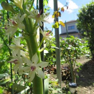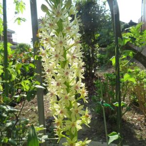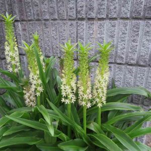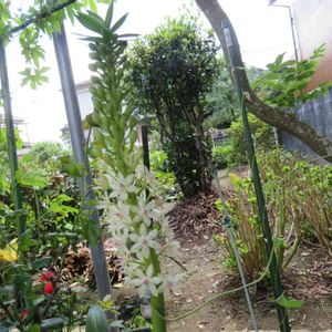 先日アップしたパイナップルリリー、開花しました。 つぼみの時は寸詰まりな感じでしたが、だいぶ伸びました。 これは群生させたいなぁ。
