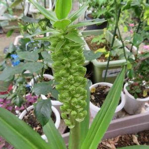 パイナップルリリー 可愛い名💕 葉も花もグリーンですが ユニークな形に惹かれて