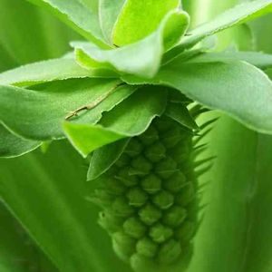 パイナップルリリー🍍 花芽が見えてきました✨ プツプツの所に白いお花🌼が咲くんですが 茎が柔らかく姿が乱れるので グリーン🌿一色ですが この位が可愛い💕のかな
