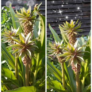 こんにちは👋😃 パイナップルリリーが、いつの間にか満開??になってました😃 このままにしておけばいいのかな⁉️ 花柄はカットすべき✂️?? サクサク検索🔍️ よく見ると、モジャモジャで面白いね😆💕