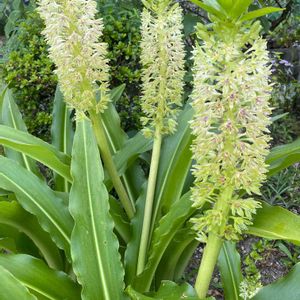 昨年は咲かなかった、タグがないので、間違えてたら、ごめんなさい😅パイナップルリリーの花が、初めて開花💕