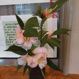 いつものクリニックの受付 椿よりもサザンカのほうが好きなんです😍