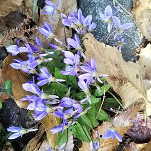 青いお花が咲いてきて青空も出てきました💙 ①タチツボスミレ ②種からのネモフィラ2色 ③八重咲きムスカリ ④花ニラ ⑤ロベリア