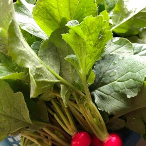 種を蒔いてから33日、混んできたので大きいのを間引き収穫しました。洗いながら食べて見たら薄い塩味を感じました。今夜は🥗サラダで食べます。