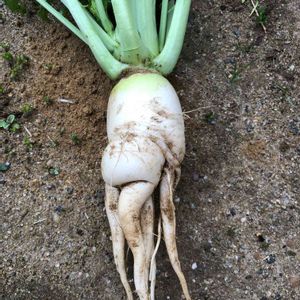 3月末に種まきした葉大根です🤭 間引きした🌱を庭に植えて放置💦 大根になってる🤗 食べれるのかしら?🤔