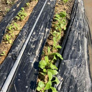 毎年蒔いてるダイソーの葉大根。発芽揃ったので、不織布をとりました。BT剤を散布しています。