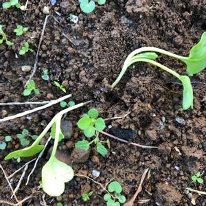 先日播いた葉大根です。 茎の下のところが細くなって倒れてしまいました。 ネキリムシにかじられたらこんな感じですか?それとも他の原因があるのか...。 どなたか教えていただけると助かります🥺よろしくお願いします🙏