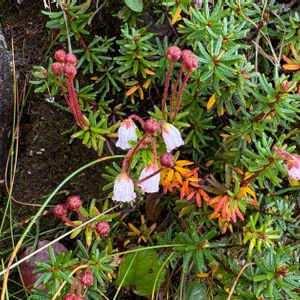 ガンコウラン(岩高蘭) ツツジ科 ガンコウラン属 5~6月 10~20cm 在来種 常緑小低木 雌雄異株 森林限界より高所にある高山植生の代表的な植物の一つ 果実があるじゃないか✨