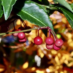 フッキソウ(富貴草) ツゲ科の常緑小低木。 北海道から九州を含む東アジアに分布する。 山地の林内に生える。 フッキソウの実です! 2つの突起が特長です。 白く透き通った真珠⚪️のようですね。 秋から冬にかけて見られます。 この実は「森の真珠」とも呼ばれています。