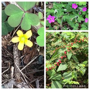 神石高原③ カタバミ(左)、ゲンノショウコ(右上)、 ミズヒキ(右下) かわいい花がいっぱいです!