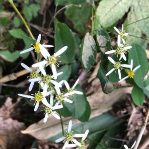 ① 山の方で撮りました! 5枚の花弁です。 何でしょうか? シラヤマギクと教えていただきました。 皆さん色々ありがとうございました!