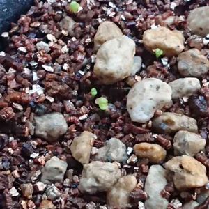 2月に播いたリトープスMIX 最近出てきたリトープス🌱 発芽が遅いモノもあるから3カ月間は湿らせておくって大切なのがわかりました