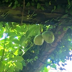 2年ほど前 ちょうど今頃、お出かけ先の庭園の パーゴラに成っていた実です ムベでしょうか🤔