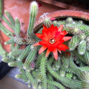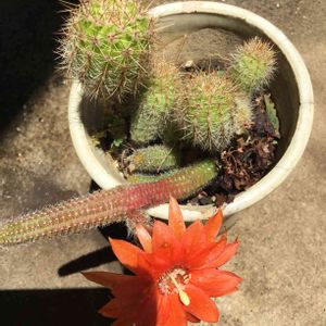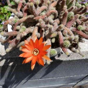 おばあちゃんちから貰ってきた紐サボテン 春から夏ぐらいにかけてオレンジ色の花を咲かせます 実家にいたやつを少し持ってきて増やしてみようとしてます