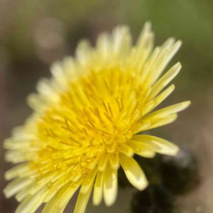 畑にて。アスターが見頃 ハルノノゲシも一緒に。ハルノと銘打ってるけど秋まで咲いている。アキノノゲシとは違う。 キク科の野草は沢山の種類があり近縁種もあるため写真の花は、正確にハルノノゲシかどうかはわかりません。たんぽぽに似たハルノノゲシは、全体で2cm前後の黄色い小さな花です。黄色いかたまりはひとつの花のように見えますが、舌状花(ぜつじょうか)といい、舌のように広がった小さな花が、たくさん集まってできている。1枚づつが1つの花ということ。【ググってみました】 マクロレンズで見ると面白い構造ですね👀 ※ウスジロノゲシという、花が白い変種や、オニノゲシやアキノノゲシというキク科の近縁種がある。