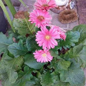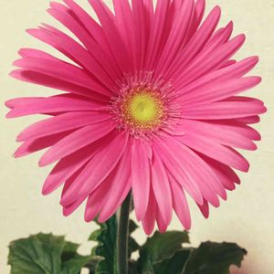 ピンクガーベラさん、復活の兆し!嬉しい!! こちらをじっと見ています…