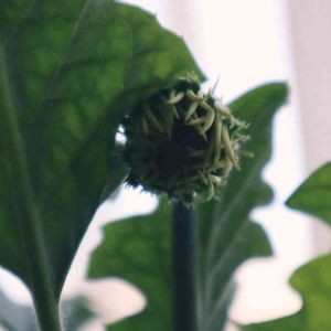 横顔美人。 フサフサなピンクガーベラさん、いよいよ開花まであと少し!