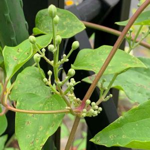 センニンソウ 庭の生け垣に絡みついていたツルに蕾がついたと思ったら、雨上がりに一気に花が開いた♡ ボタンヅルと違って蕾の先は尖っていて、ちょうどクモが巣をかけていた (2枚目) 雄しべの長さはガク片よりも短くて、雌しべの先は反り返って、秋に髭仙人になるのを待っている|ू•෴•)(3、4枚目) 葉の変化は色々あるのだけれど、いずれもギザギザはないね(5枚目)